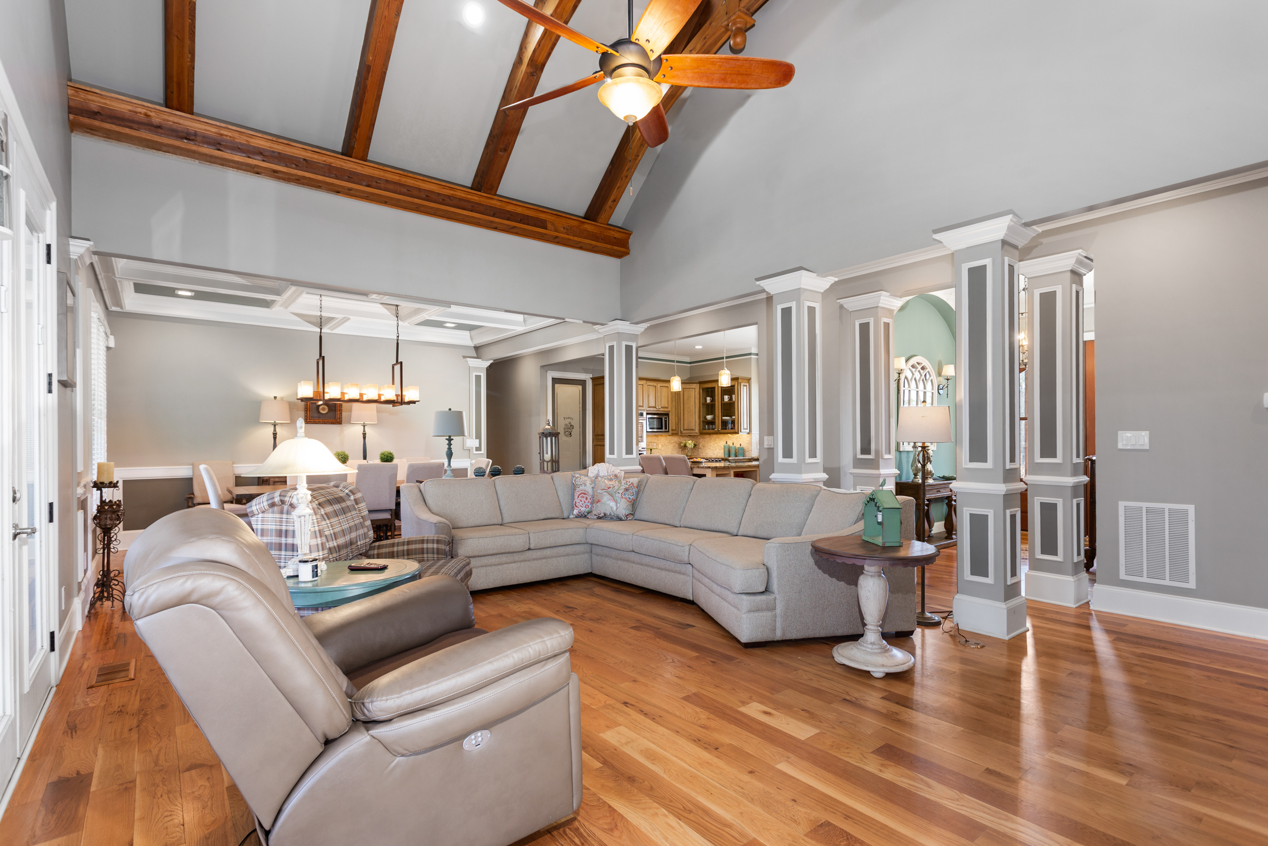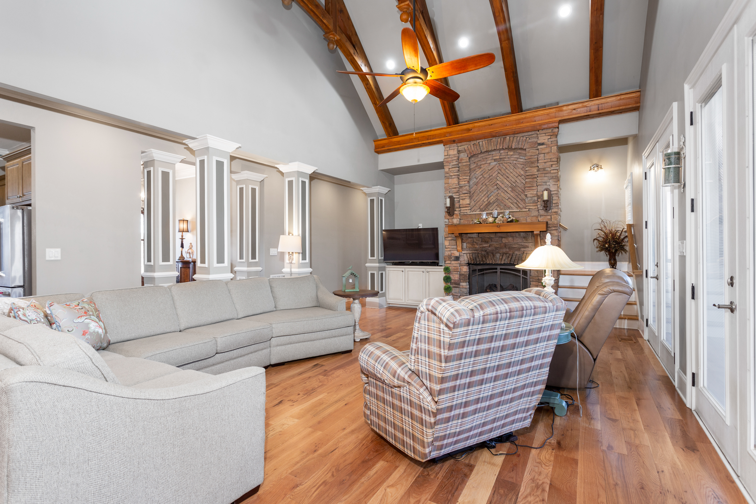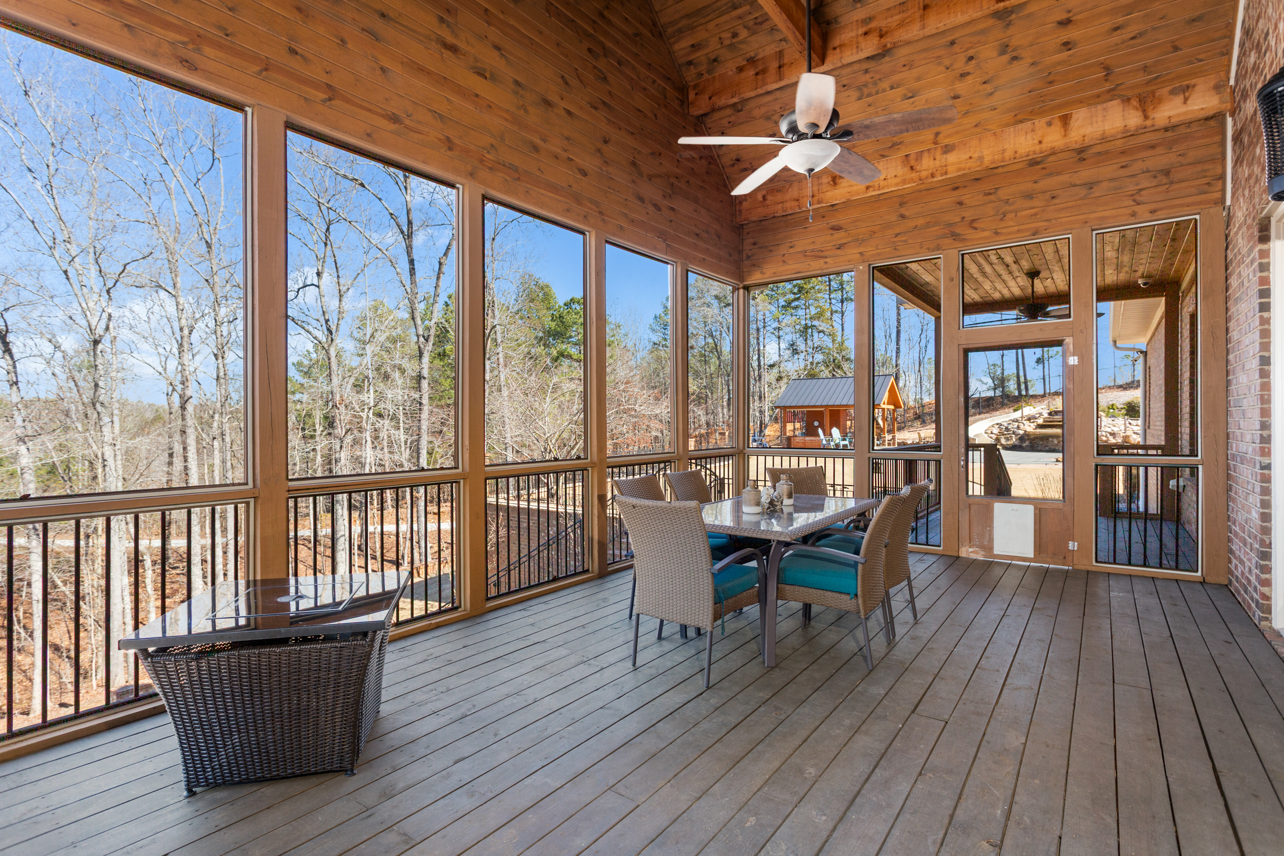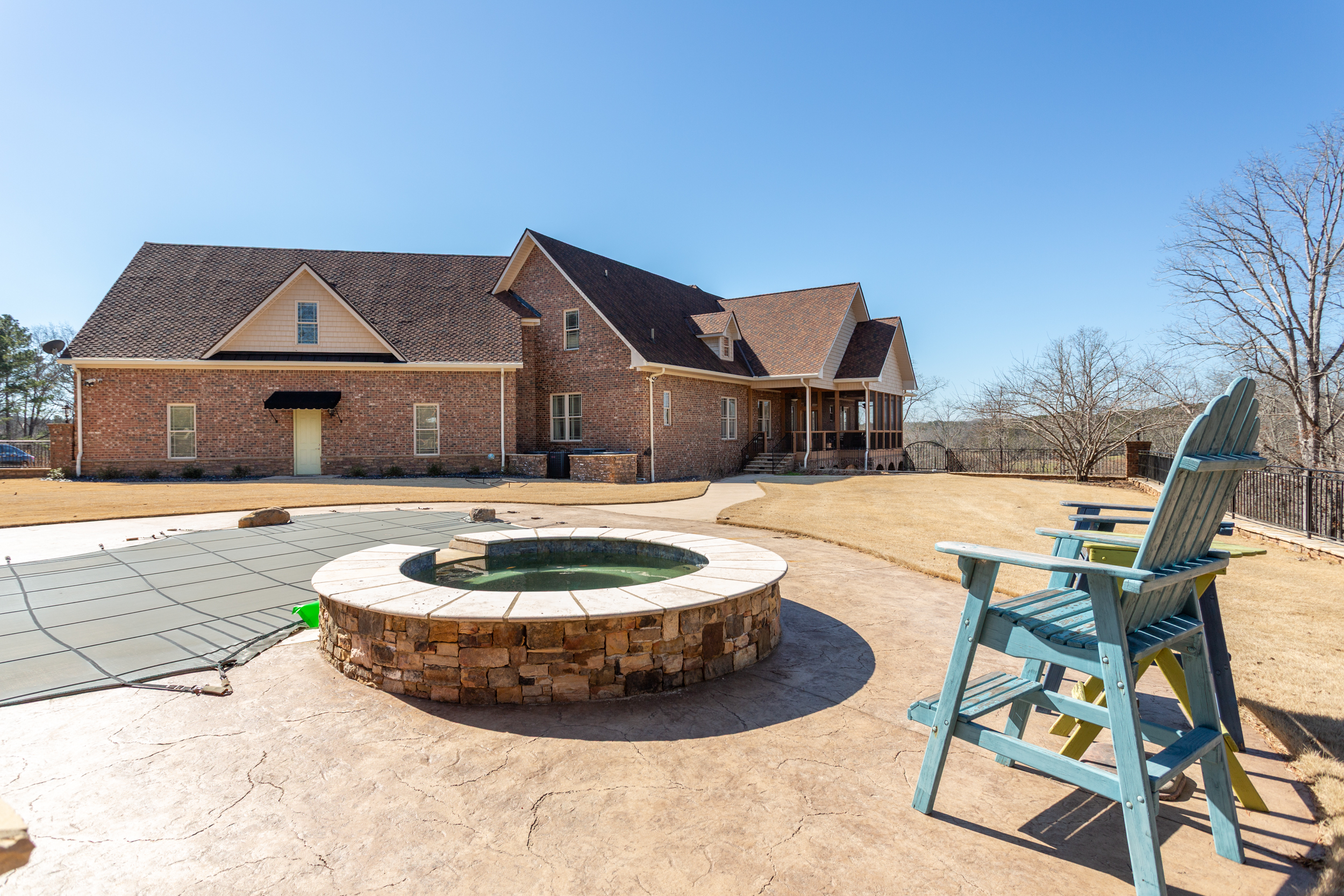Step outside and the property transforms into a private resort. Whether you're launching from the riverbank before sunrise, sliding into the pool at noon, or gathering around the portico fireplace after dark — the outdoor grounds were built to be lived in, not just admired.